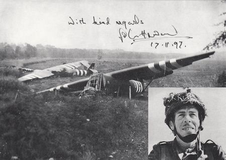 (1912 - 1999) British Army officer who led a glider-borne assault on two bridges between Bénouville and Ranville in Normandy, one of which became known as "Pegasus Bridge". With some reinforcements, he was able to hold the bridge against an attack by elements of the 21st Panzer Division, strongly supported by artillery. S.P. 6" x 4" b/w, a composite image of British gliders and a portrait of Howard, signed and dated 1997. Fine.