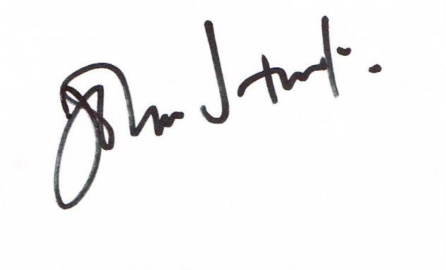 A white card signed by the British actor John Hurt. Condition: Very good.