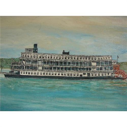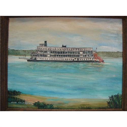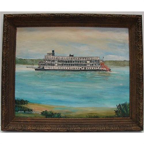 JOHN KAUTZMAN, AMERICAN, 20th c. ACRYLIC. “Delta Queen IV”. Primitive steamboat portrait. Signed lower left “John Kautzman”. Information on stretcher. Sight size 16” x 20”.