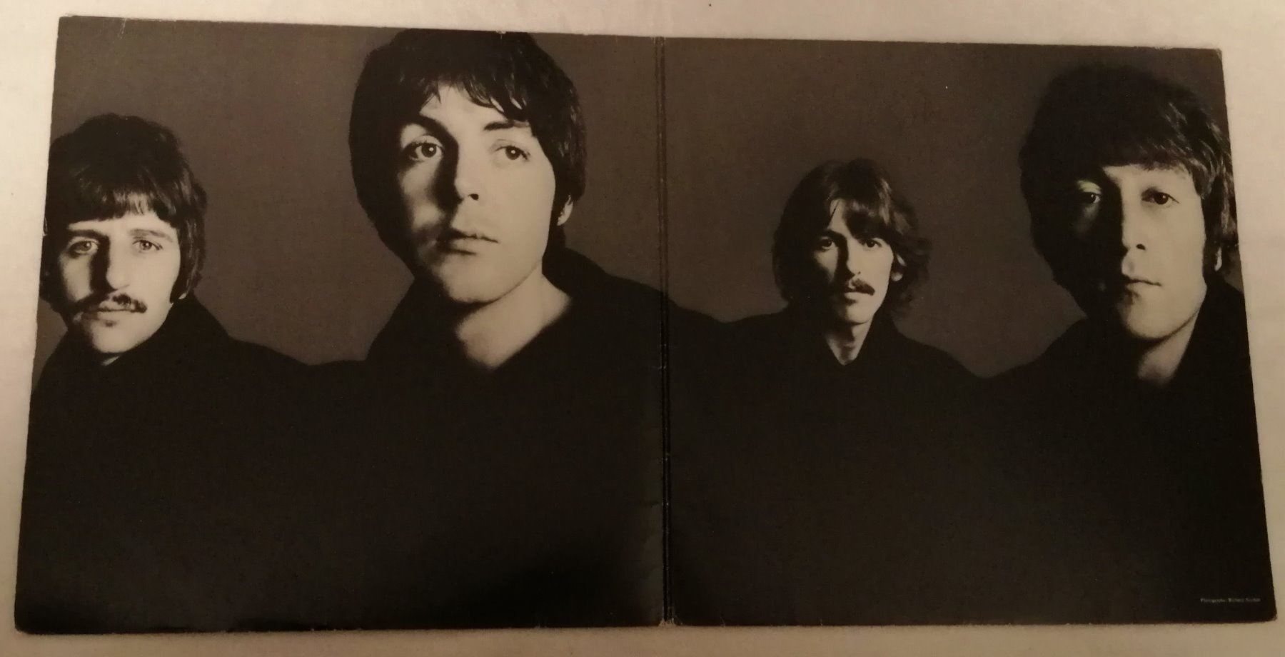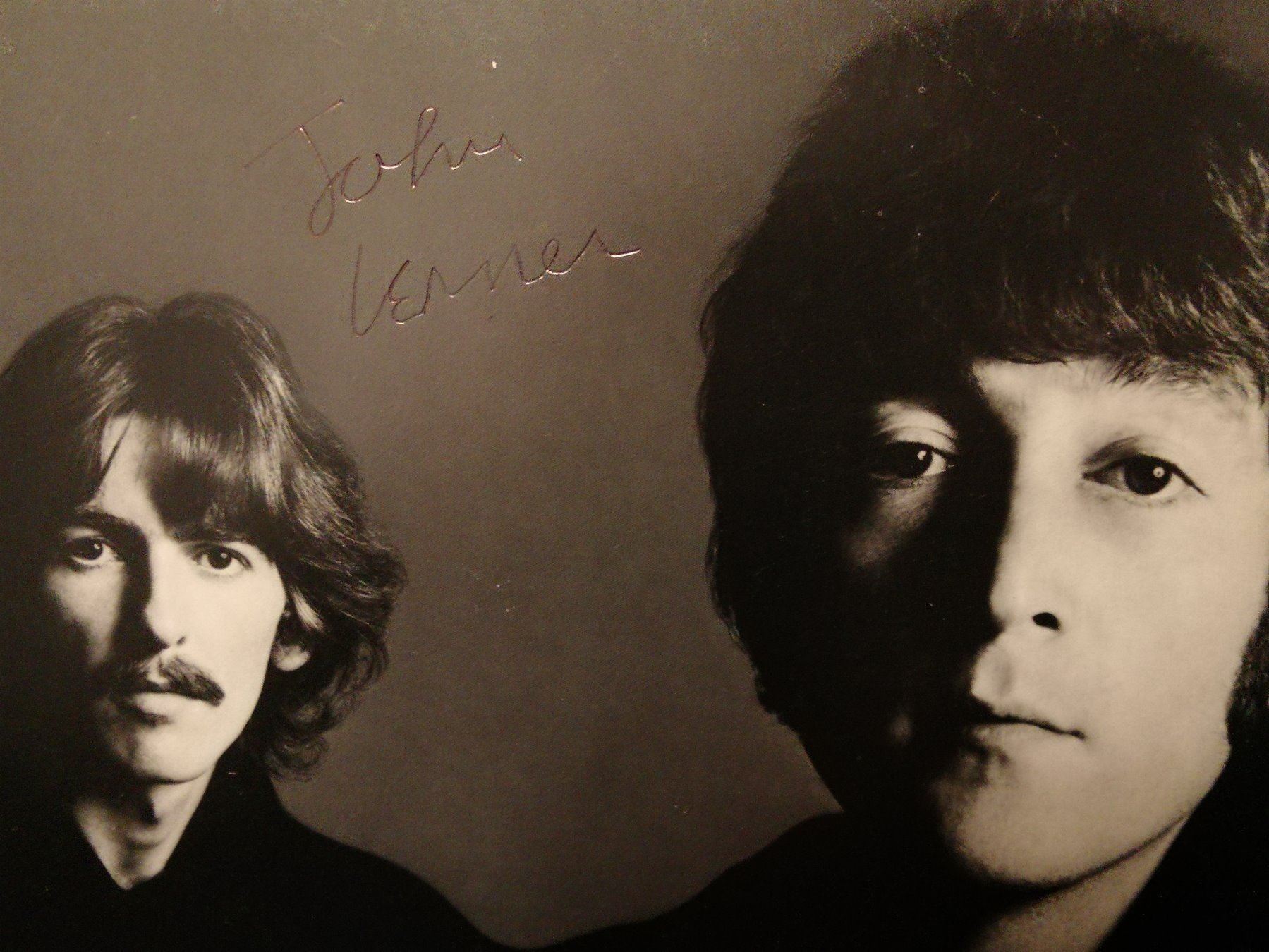 A John Lennon signed image made famous by Richard Avedon. Signed in biro, supplied with coa. The image is the inner sleeve of a compilation Beatles album of love songs. Mounted and framed.