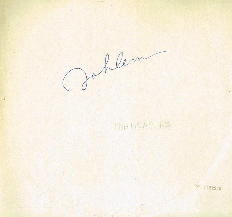 JOHN LENNON: A 1960's white album embossed with serial number signed by John Lennon in biro. Complete with records and professionally mounted and framed.