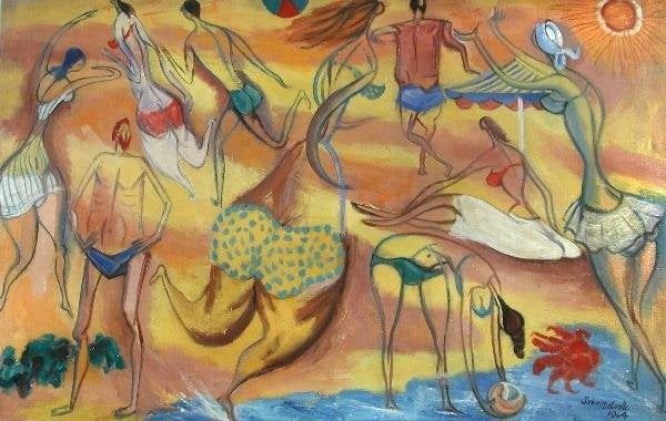 John Melville (1902-1986)  Frolics on the Beach  signed lower right "John Melville 1964"  oil on canvas  112 x 176cm.