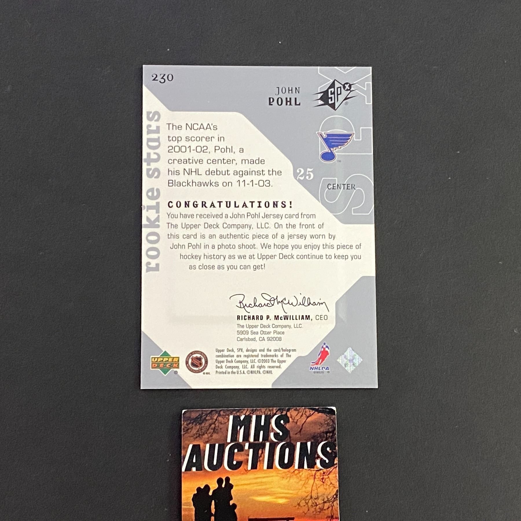 JOHN POHL 2003-04 SPX UPPER DECK ROOKIE JERSEY HOCKEY CARD #091/999