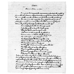 <b>165. JOHN QUINCY ADAMS</b> (1767 - 1848) Sixth President of the United States, Secretary of State under Monroe who principally formulated the Monroe Doctrine. Early, rare, fine content A.Ms. (unsigned), 2pp. 8vo., [n.p., n.d.], a synopsis of "<i>Adams's Lecture 4.382</i>," likely part of his well-known <i>Lectures on Rhetoric and Oratory</i>. In small part: "<i>...It is a great, but unavoidable inconvenience, attached to the pursuits of sciences, that the student is obliged to devote more of his time to trace and detect the errors of other men, tan to observe, and fix in his mind the operations of nature. In entering upon the investigation of any single branch of natural history, philosophy, we are soon reminded of that admirable comparison of the past between the seeker of knowledge and the traveller over the Alps [here Adams insert a lengthy poem, possibly by Shelley]...Perhaps in the whole circle of the sciences, there is notion to which the designation of the first prospect, and the dreary, weary wilderness in which they close, are so peculiarly applicable, as to that which is now the subject of our researches. There is none in which Nature has so superficial observations much the appearance of contradicting her own Laws...At the very first entrance upon our enquiries, before we had learnt the alphabet of the language we are to acquire...we have been called upon to settle the disagreement of the doctors, and to form a...judgment of comparative merits between three distinct and rival theories, only one of which can possibly be true, and all of which may possibly be false...We are all as able at this moment to pronounce upon the doctrines of Franklin, Ecles and Nollst, and we shall be after years of industrious investigation...</i>". Adams held a professorial chair of rhetoric and oratory at Harvard. A clean central fold-tear, otherwise boldly written and very good, quite worthy of archival repair.<b>$1,000-1,500</b>