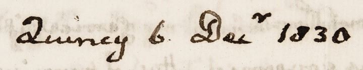 “Quincy 6 Dec. 1830 --- My dear Sir: