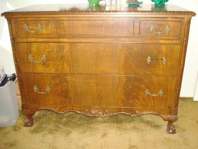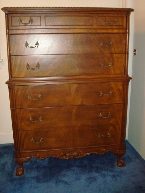 JOHN STUART 4 Piece Bedroom Set:3 over 3 Drawer Chest On Chest, 2 Drawer Night Stand3 Drawer Low Dresser with Mirror. Bamboo Motif Carved Sides, Bell and Scroll Carved Apron, Ball and Claw. Feet. Part of Widdicomb Company. (600-1000)