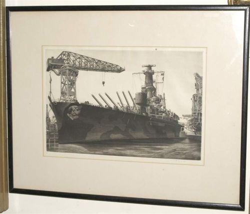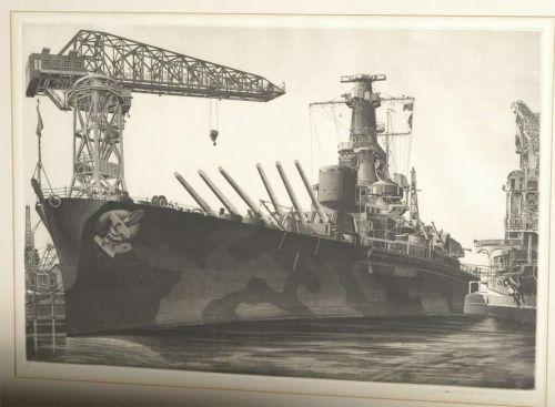 JOHN TAYLOR ARMS ETCHING, Battlewagon, 12"x17 3/4" plate, pencil signed,, CONDITION: excellent, no damage or repairs. PACKING AND SHIPPING BY FAIRFIELD AUCTION WITHIN CONTINENTAL USA (excluding insurance) $40,