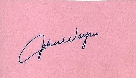 JOHN WAYNE: Signed piece of paper measuring 4inches by 2.5 inches