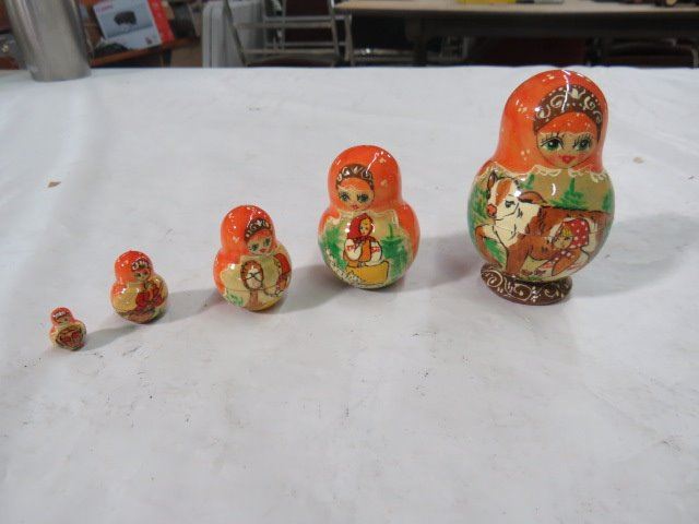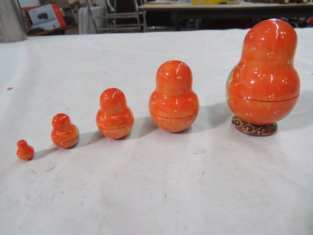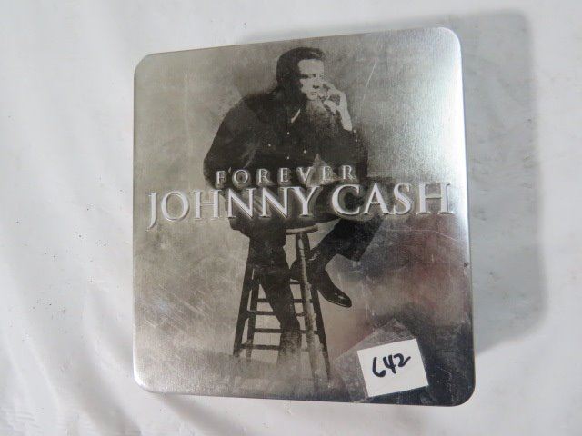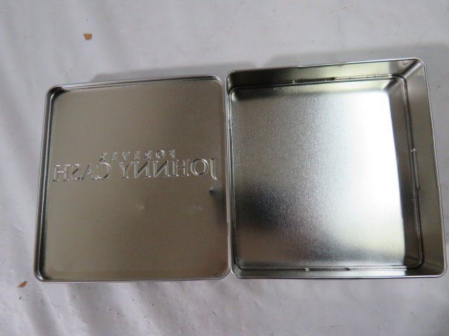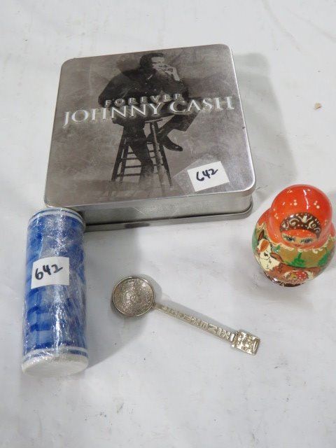 JOHNNY CASH CD CASE (METAL) & SET OF NESTING DOLLS & SMALL SUGAR SPOON (SILVER), VINTAGE *SMALL CERA