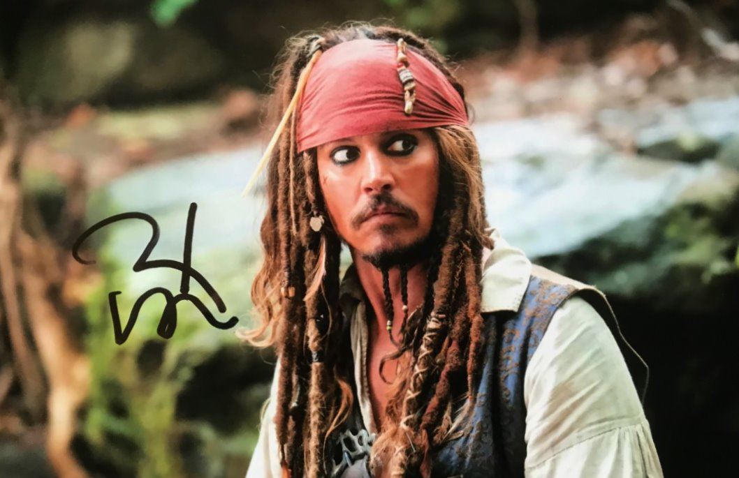 Johny Depp signed photo of him in one of his most famous roles as Captain Jack Sparrow. Size: 9x6 inches.
