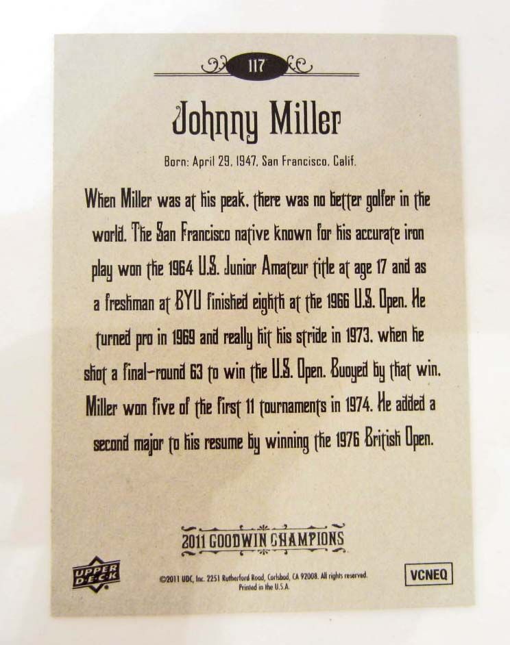 JOHNNY MILLER 2011 UPPER DECK GOODWIN CHAMPIONS #133