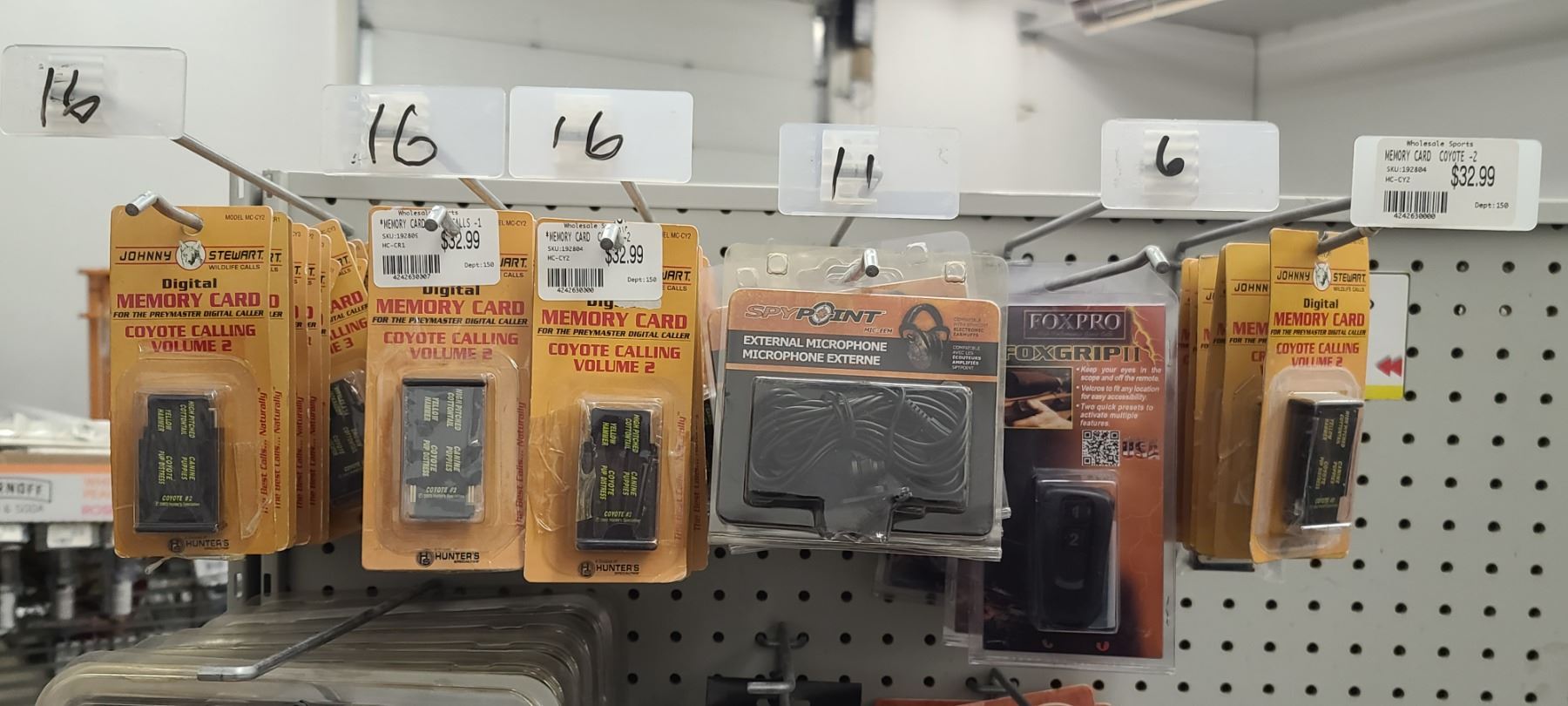 JOHNNY STEWART MEMORY CARDS QTY 55, FOX PRO GRIP II QTY 11, SPYPOINT EXTERNAL MICROPHONE