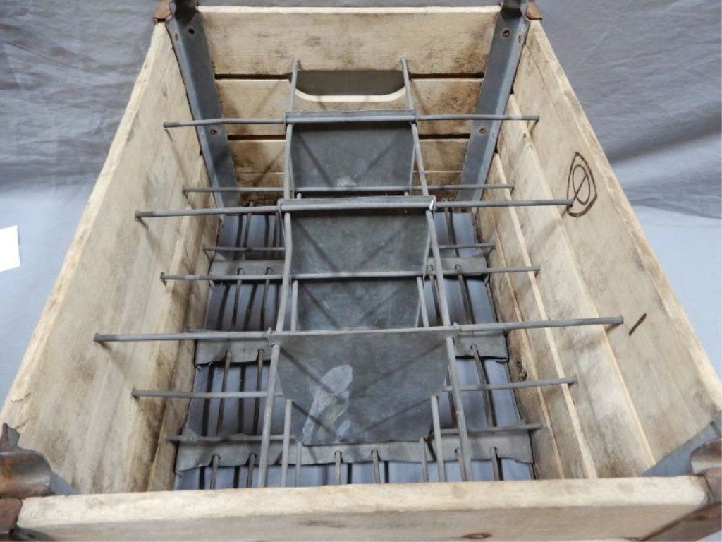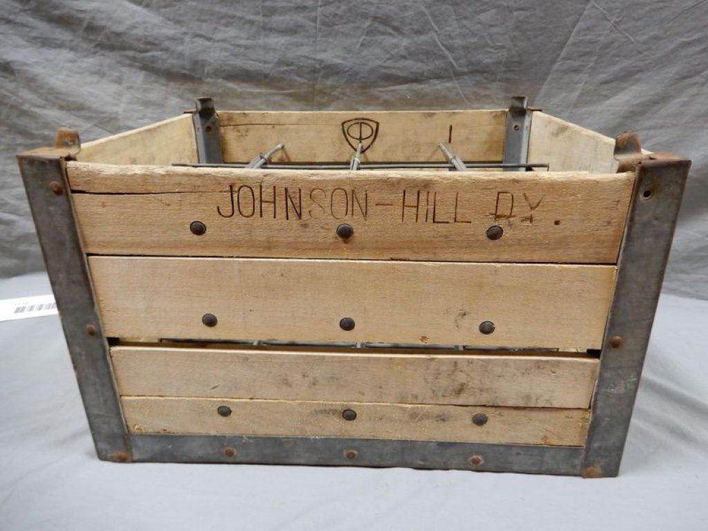 JOHNSON-HILL WOODEN DAIRY CRATE ORIGINAL CONDITION - HOLDS 12 LOCATION: UPPER LEFT