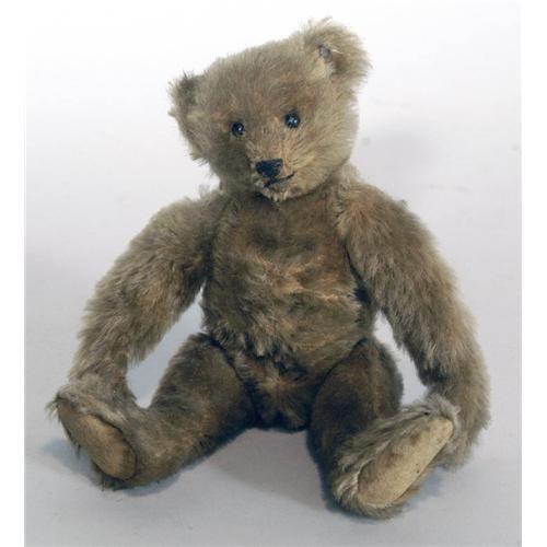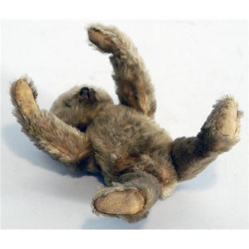 JOINTED STEIFF BEAR, 9" long, with unmarked round metal ear tag, early 20th century, CONDITION: excellent, left arm has lost some stuffing, PACKING AND SHIPPING BY FAIRFIELD AUCTION WITHIN CONTINENTAL USA (excluding insurance) $20
