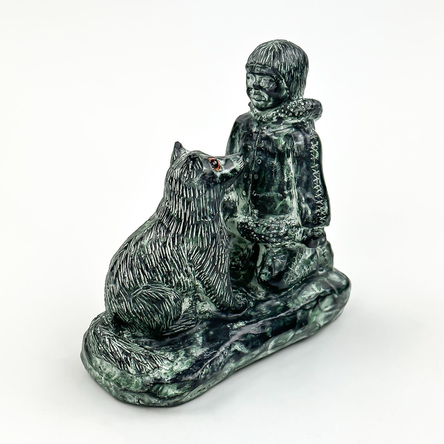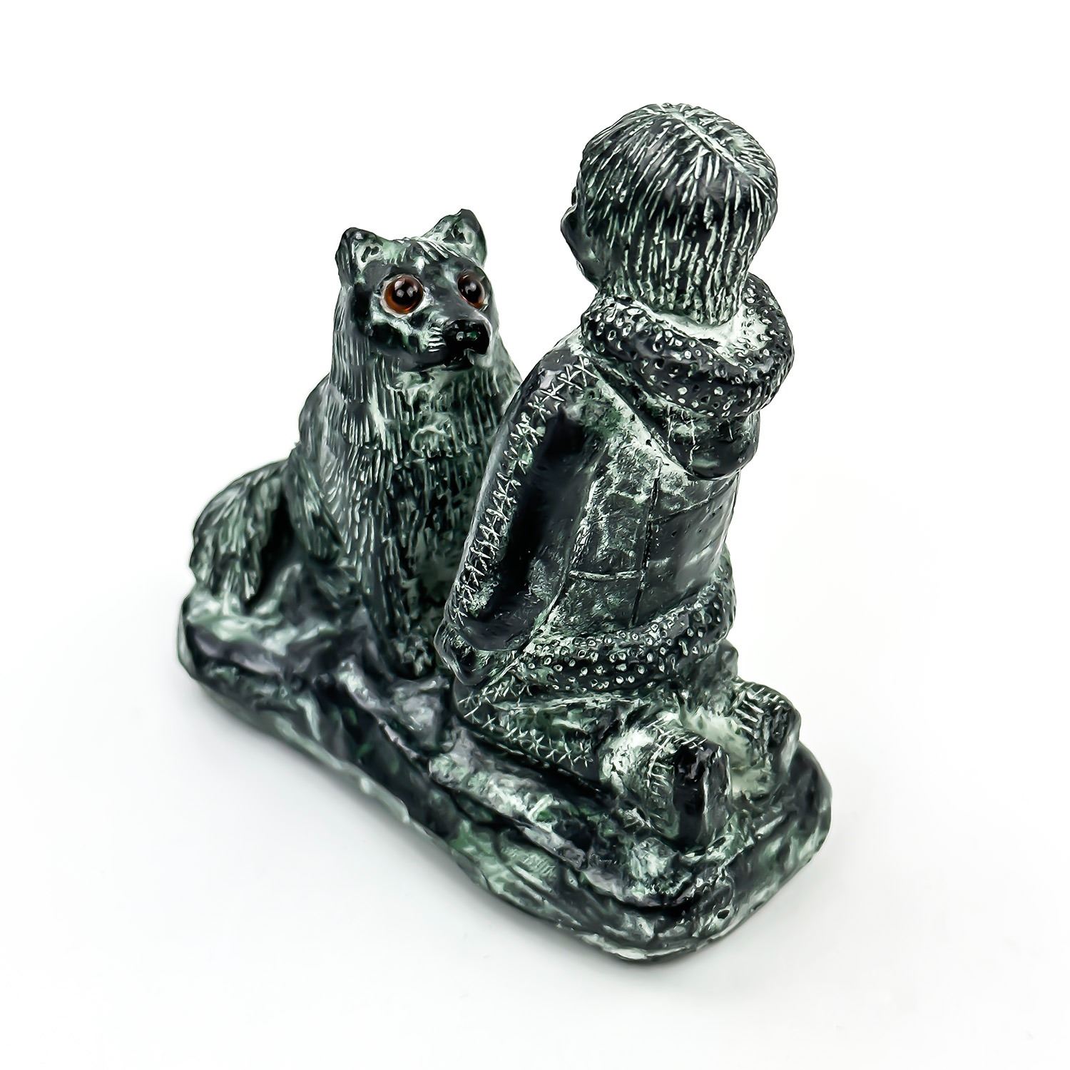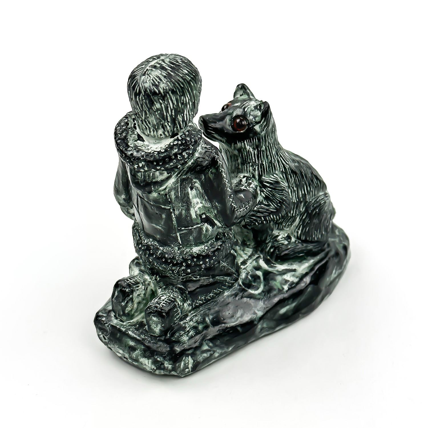 #8543 - HAND CARVED INUIT SOAPSTONE SCULPTURE - HAND CRAFTED IN CANADA. MEASURES:4 1/8” (10.5 CM) TALL BY 4 1/8” (10.5 CM) WIDE AND 2 1/4” (5.5 CM) DEEP***ITEM(S) LOCATED IN LETHBRIDGE ALBERTA. FREE TRANSPORT TO EDMONTON OFFICE AVAILABLE FOR THIS AUCTION. WORLDWIDE SHIPPING IS AVAILABLE FOR ALL ITEMS