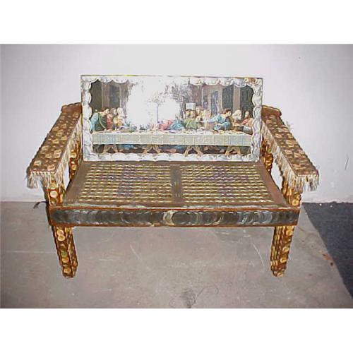 JON BOK BOTTLE CAP BENCH, POP ARTIST, ORIGINALY PURCHASED AT LITTLE RICKY'S, MINOR WEAR ON BOTTLE CAPS, GOOD COND