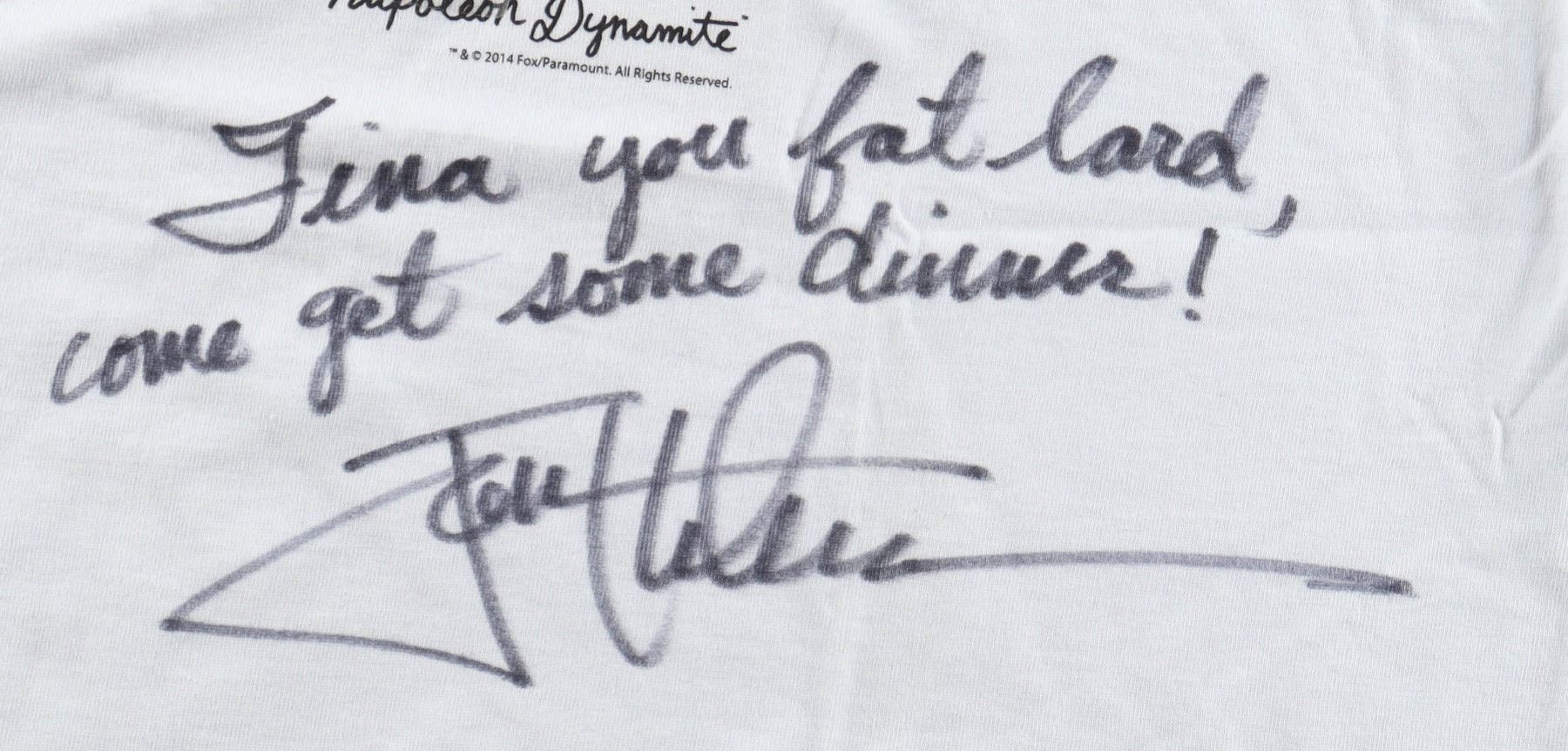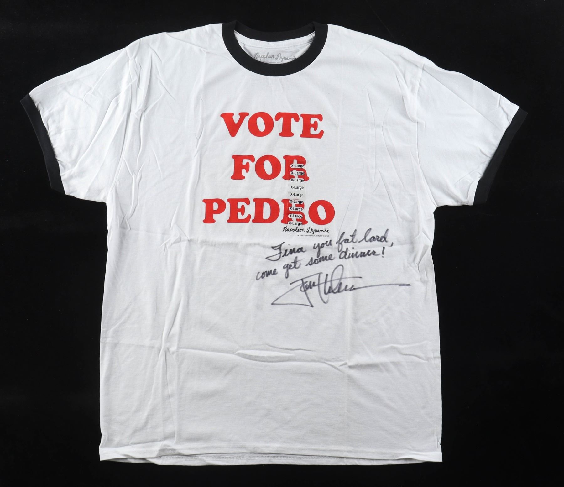 JON HEDER SIGNED SIGNED AND INSCRIBED VOTE FOR PEDRO T-SHIRT (JSA COA)