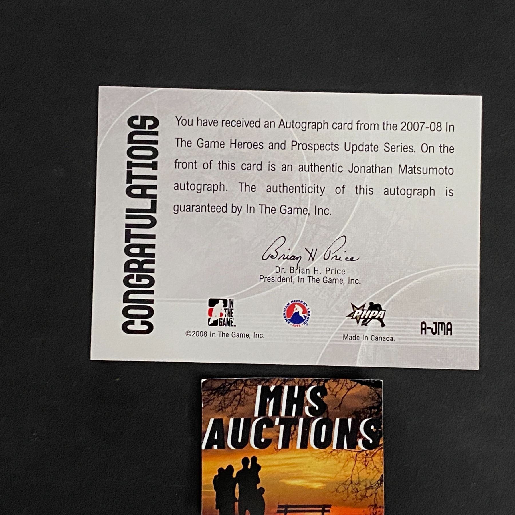 JONATHAN MATSUMOTO 2008 IN THE GAME AUTOGRAPH CARD