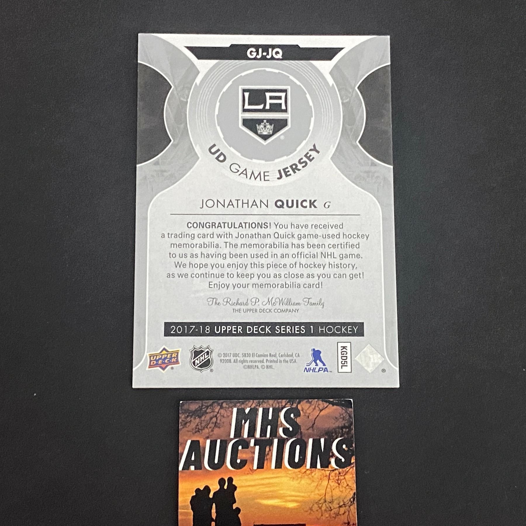 JONATHAN QUICK JERSEY CARD 2017/18 U.D SERIES 1 HOCKEY