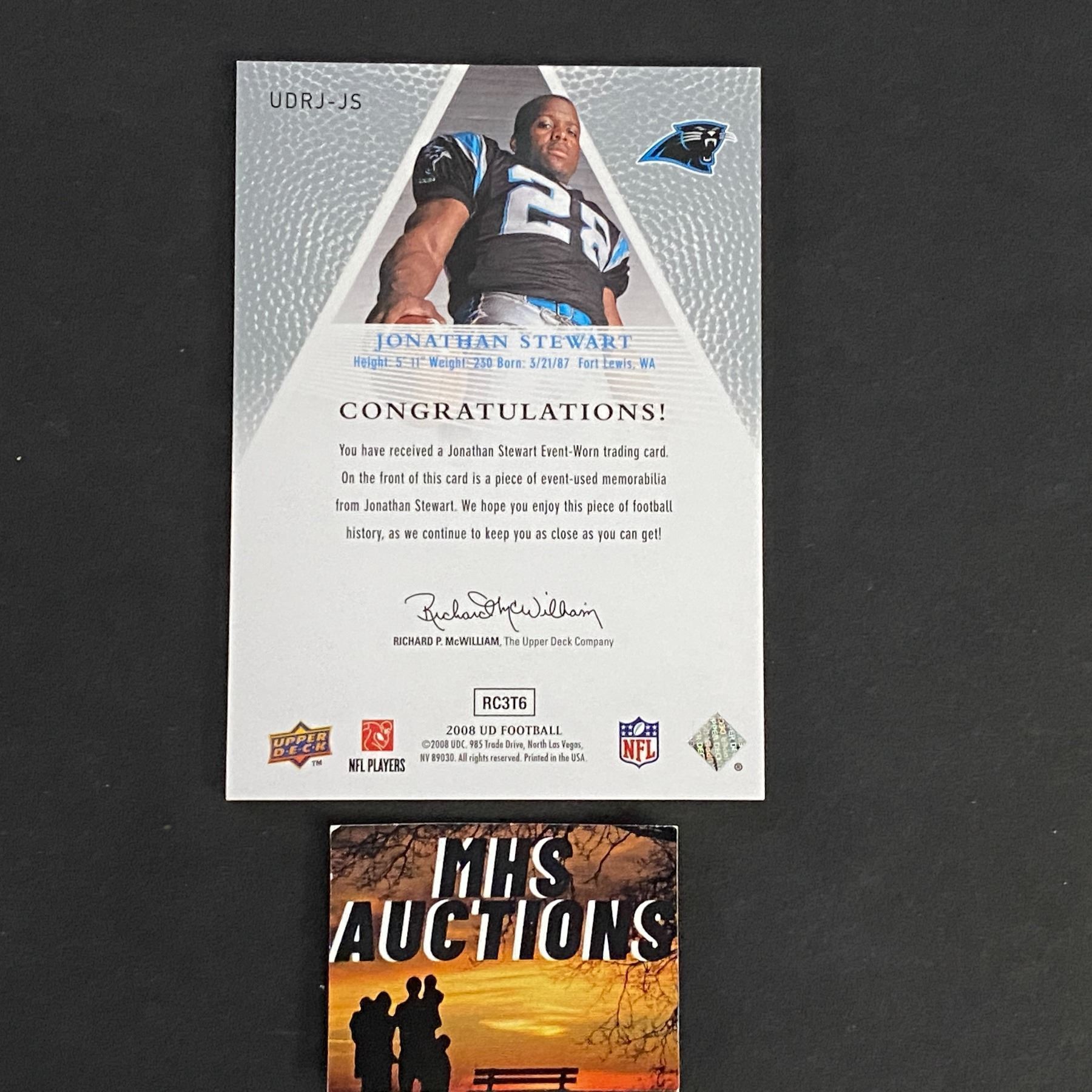 JONATHAN STEWART 2008 U.D FOOTBALL JERSEY CARD