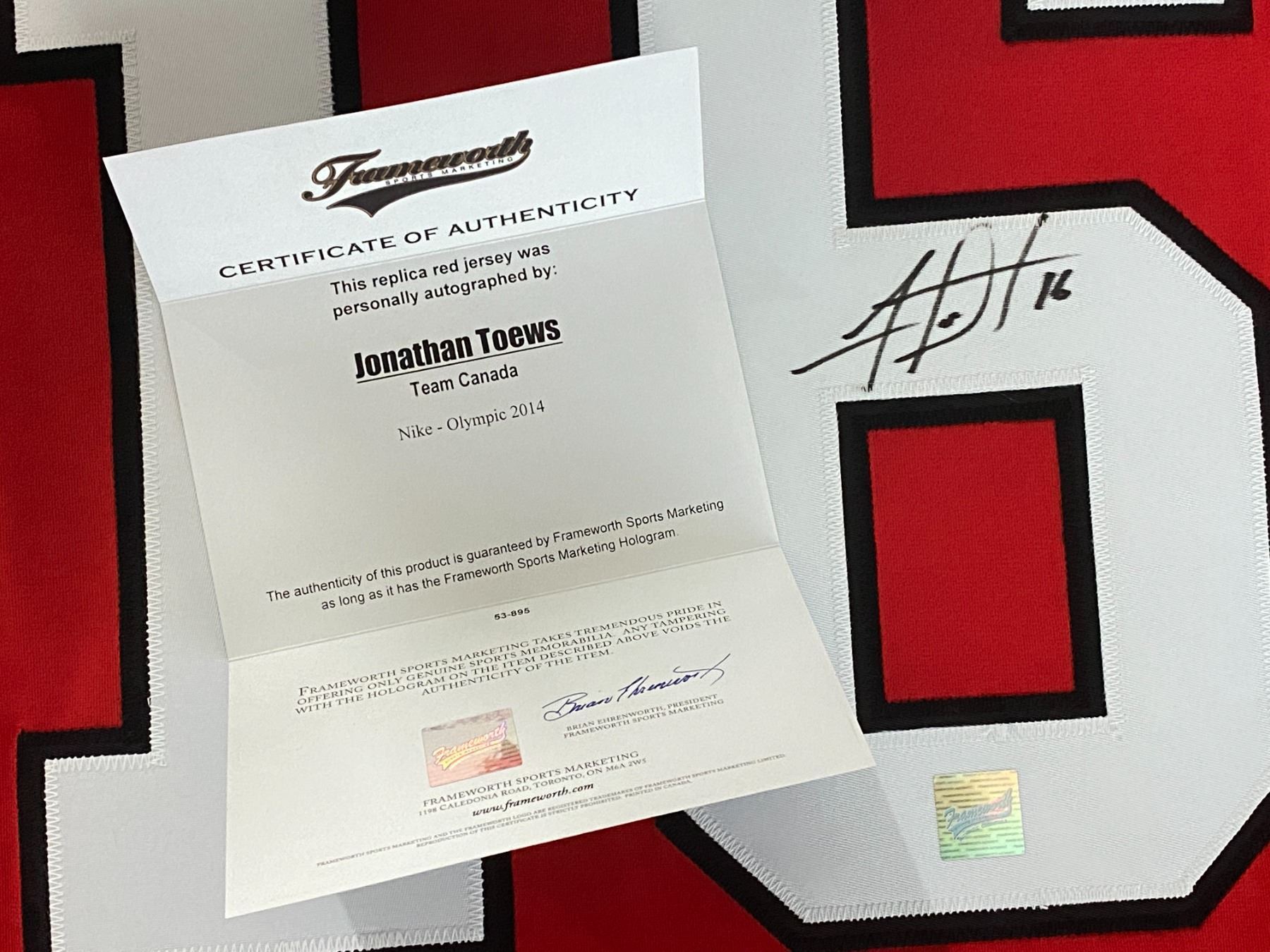 JONATHAN TOEWS FRAMEWORTH AUTOGRAPHED 2014 TEAM CANADA JERSEY