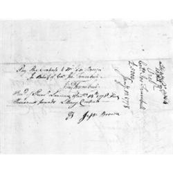 JONATHAN TRUMBULL: (1710 - 1785) Governor of Connecticut during the American Revolution who was critical in providing necessary supplies to the Continental Army. War date A.E.S. on the verso of a manuscript D.S. 1p. oblong small 4to., [Conn.], Jan. 13, 1778 ordering payment be made to Col. Joseph Trumbull the sum of five thousand pounds "...pr. order Govr. & Co8ncil of Safety..." On the verso Gov. Trumbull orders: "Pay the Contents to Mr. Jesse Brown In Behalf of Col. Jos. Trumbull -- Johth. Trumbull." Usual folds, otherwise very good condition. $150-200