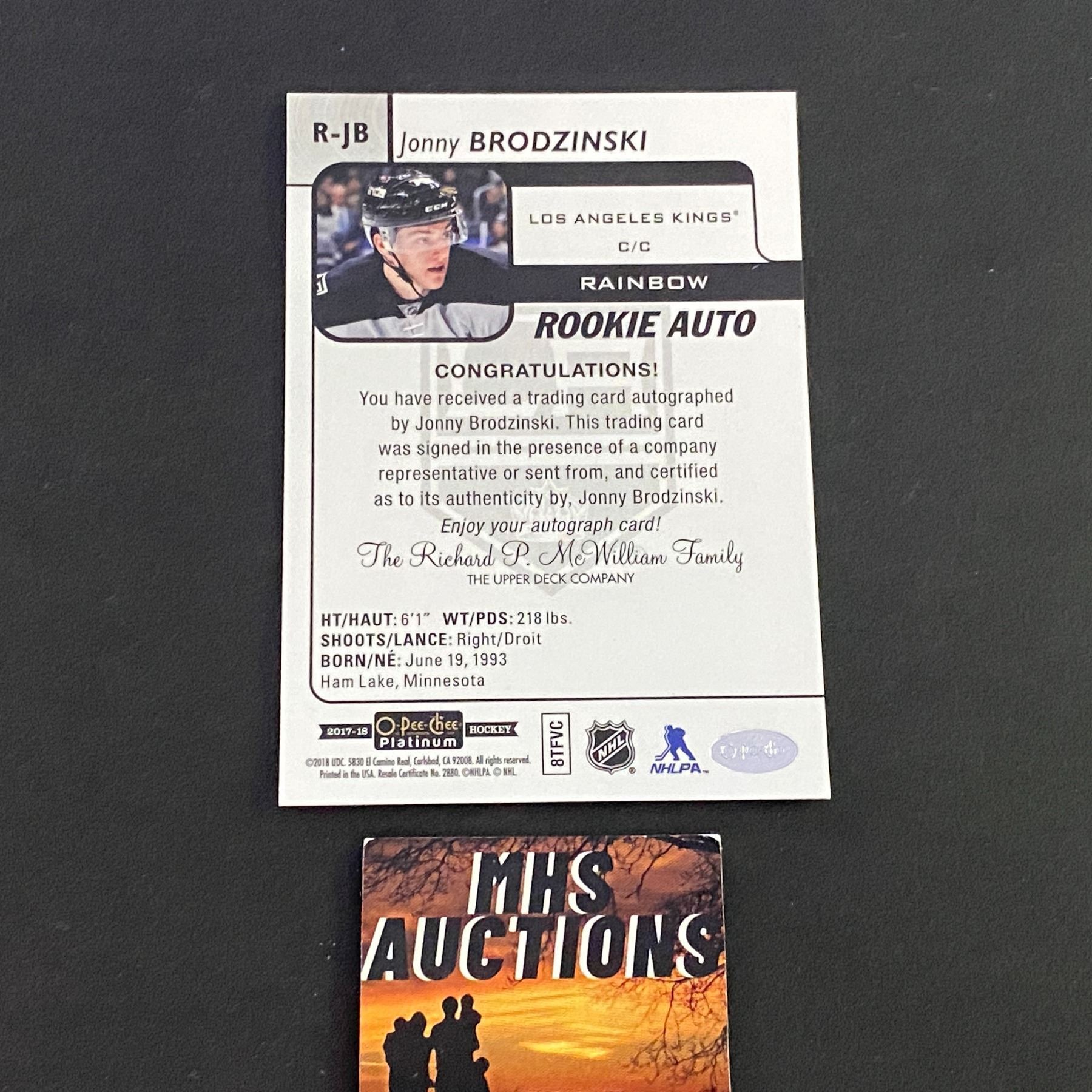 JONNY BRODZINSKI O PEE CHEE PLATINUM AUTOGRAPH CARD