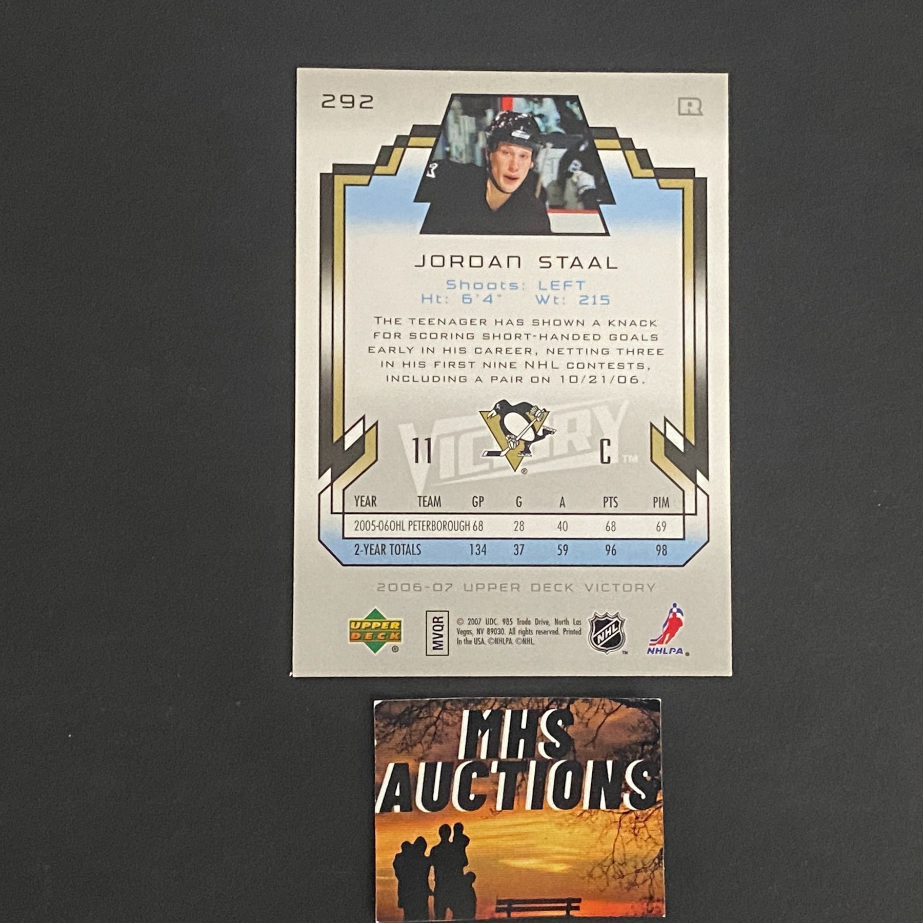 JORDAN STAAL 2006-07 U.D VICTORY ROOKIE HOCKEY CARD