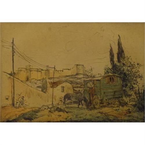 <B>JOSE ARPA (1858-1952)</B></I><BR>Untitled<BR>Color etching on paper<BR>6-1/2 x 9-1/2 inches (16.5 x 24.1 cm)<BR>Signed lower left<BR><BR> A fine example of Arpa's etching technique.<BR><BR>Provenance:<BR>Purchased at a San Antonio Museum of Art Charity Auction<B>Condition Report:</B> Excellent condition. Period frame in excellent condition.<BR><BR><b>Shipping:</b> Requires 3rd Party Shipping (<a target="_blank" href="http://www.heritageauctions.com/common/shipping.php">view shipping information</a>)