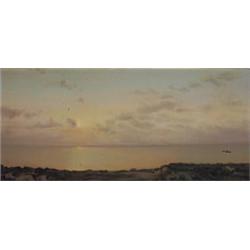 JOSE L. SANZ -MAGALLON (Guipúzcoa, 1926)"Puesta de sol en el Cant brico". Oleo/lienzo. 33 x 73 cms.Firmado angulo inferior derecho. Salida Euros 750 - Salida PTS 124.790