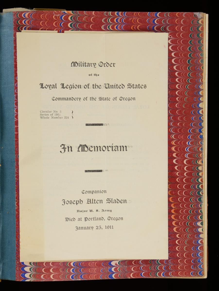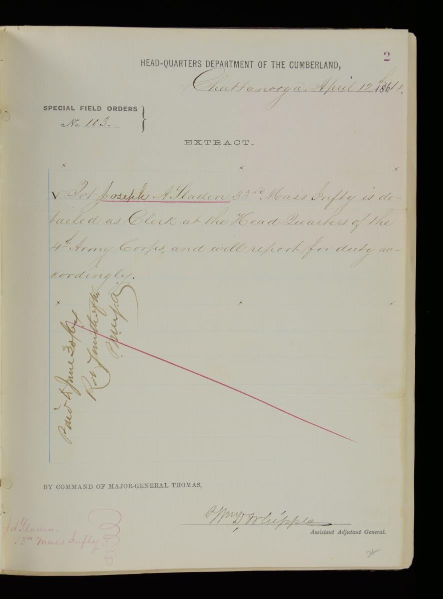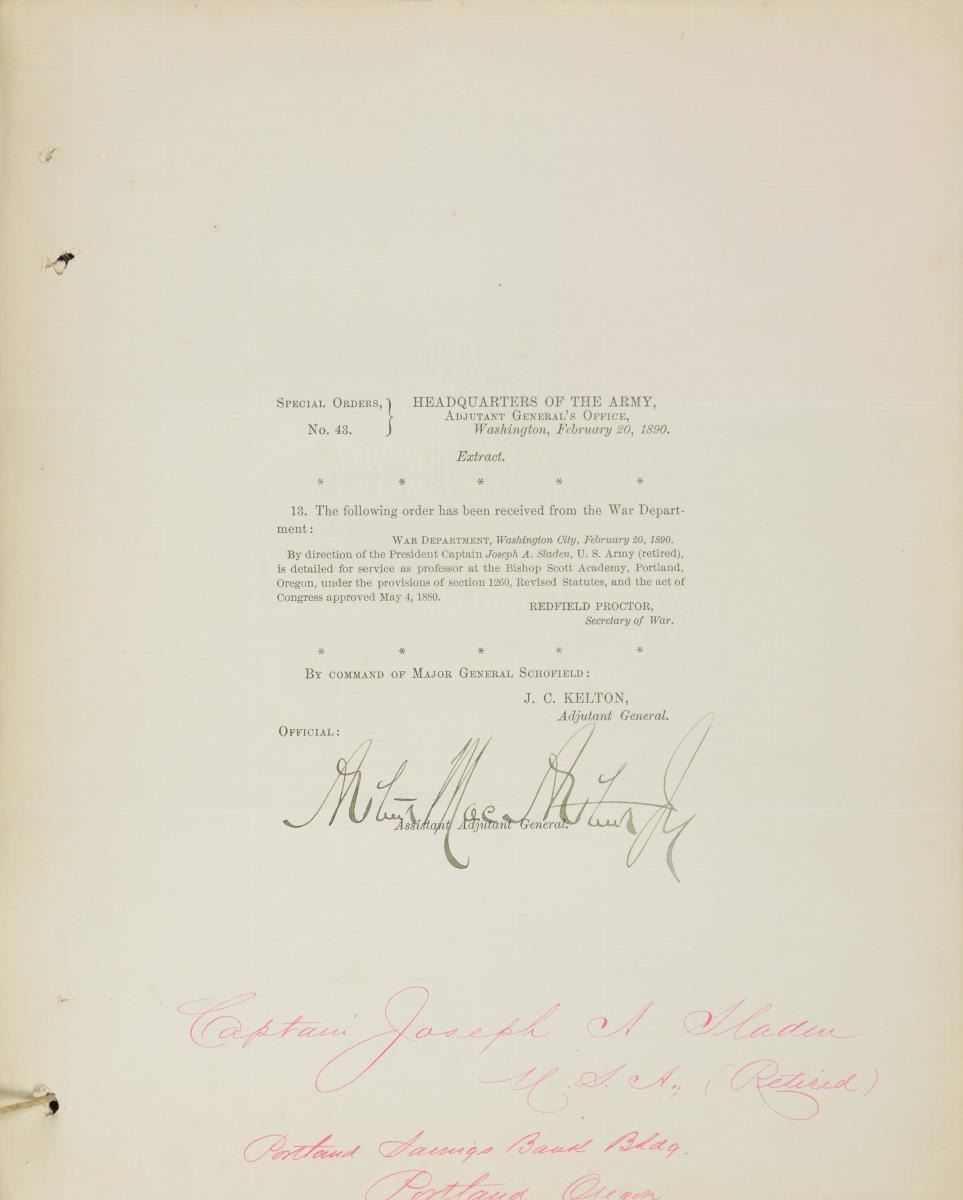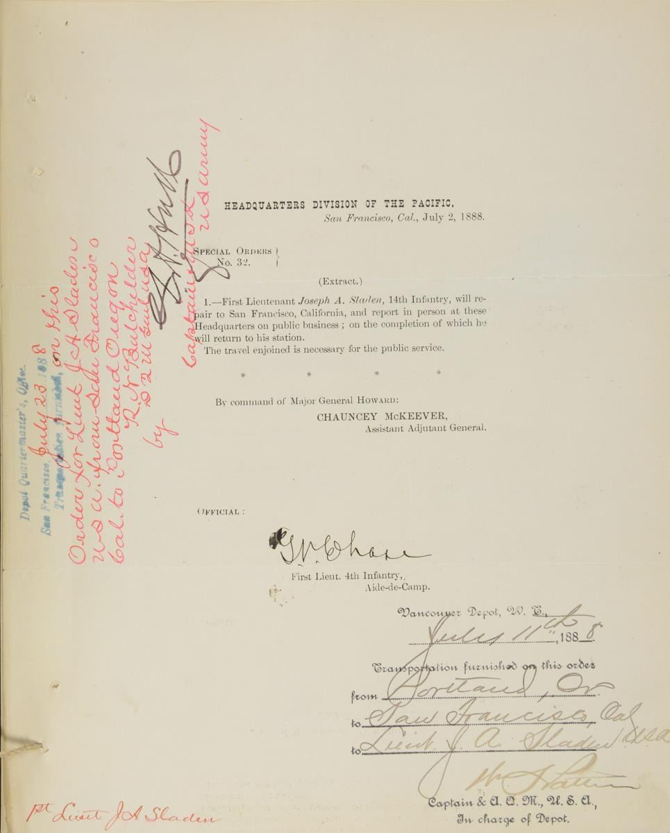 JOSEPH A SLADEN DIARIES, JOURNALS, GENERAL ORDER