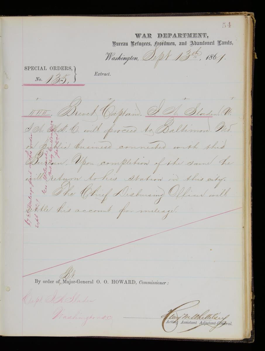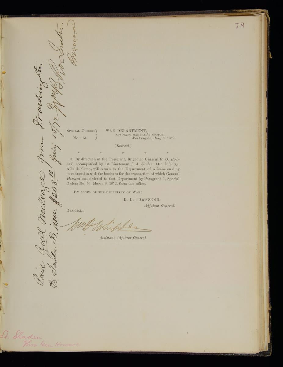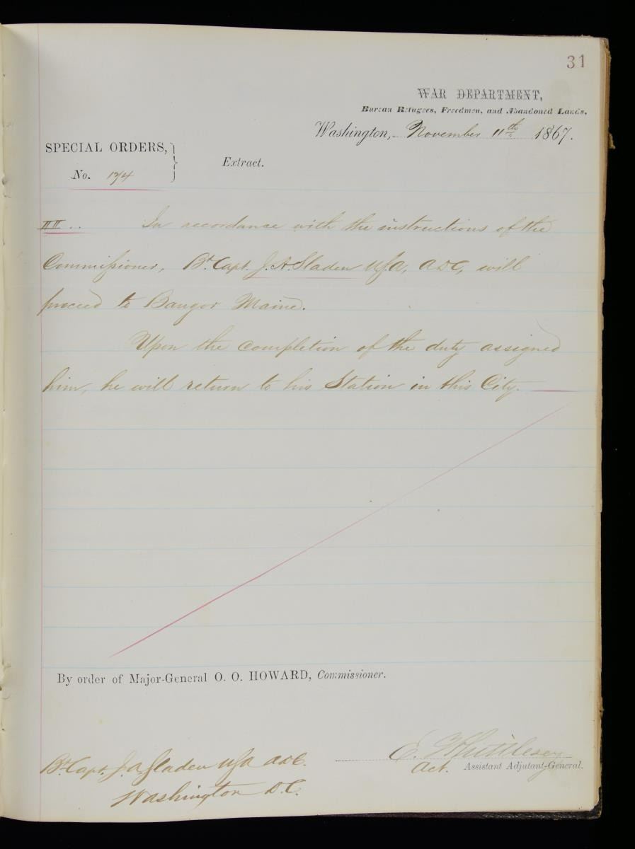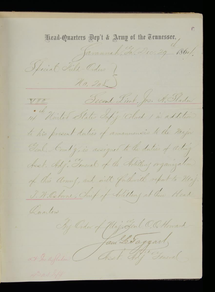 JOSEPH A SLADEN DIARIES, JOURNALS, GENERAL ORDER