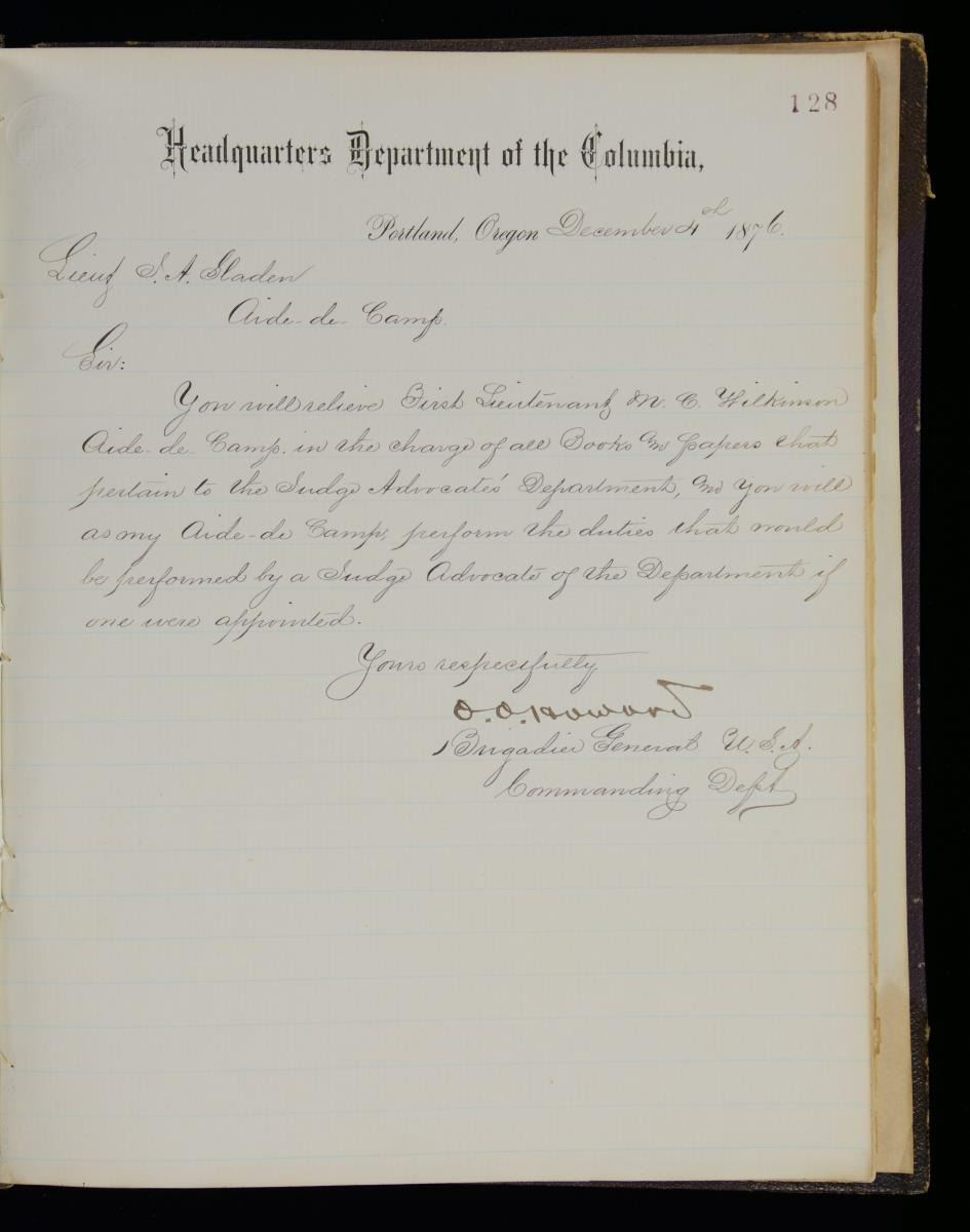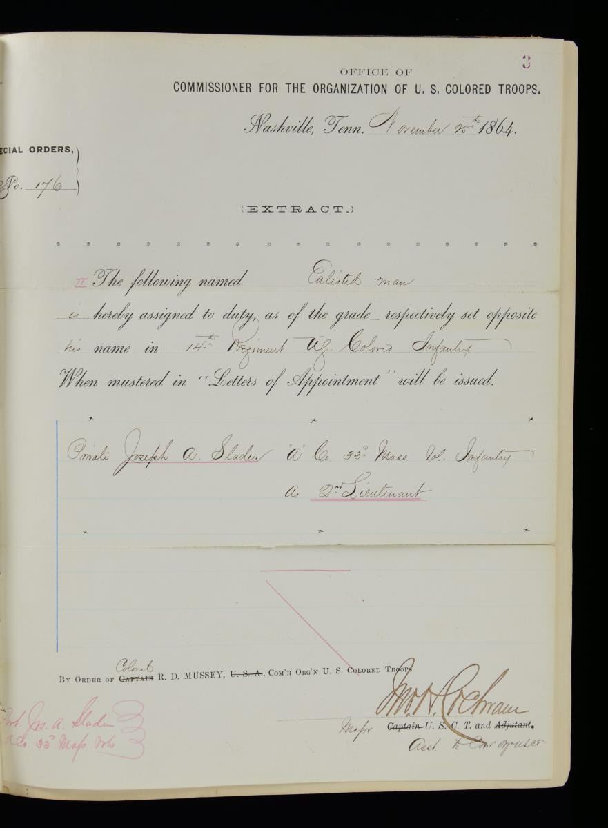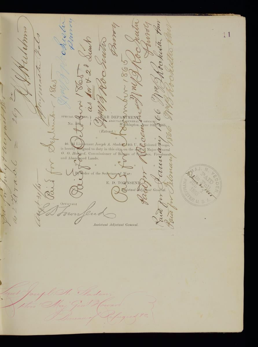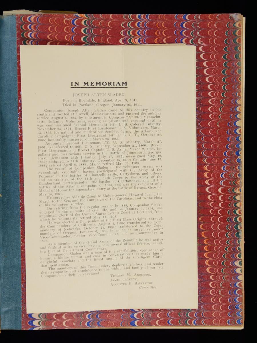 JOSEPH A SLADEN DIARIES, JOURNALS, GENERAL ORDER