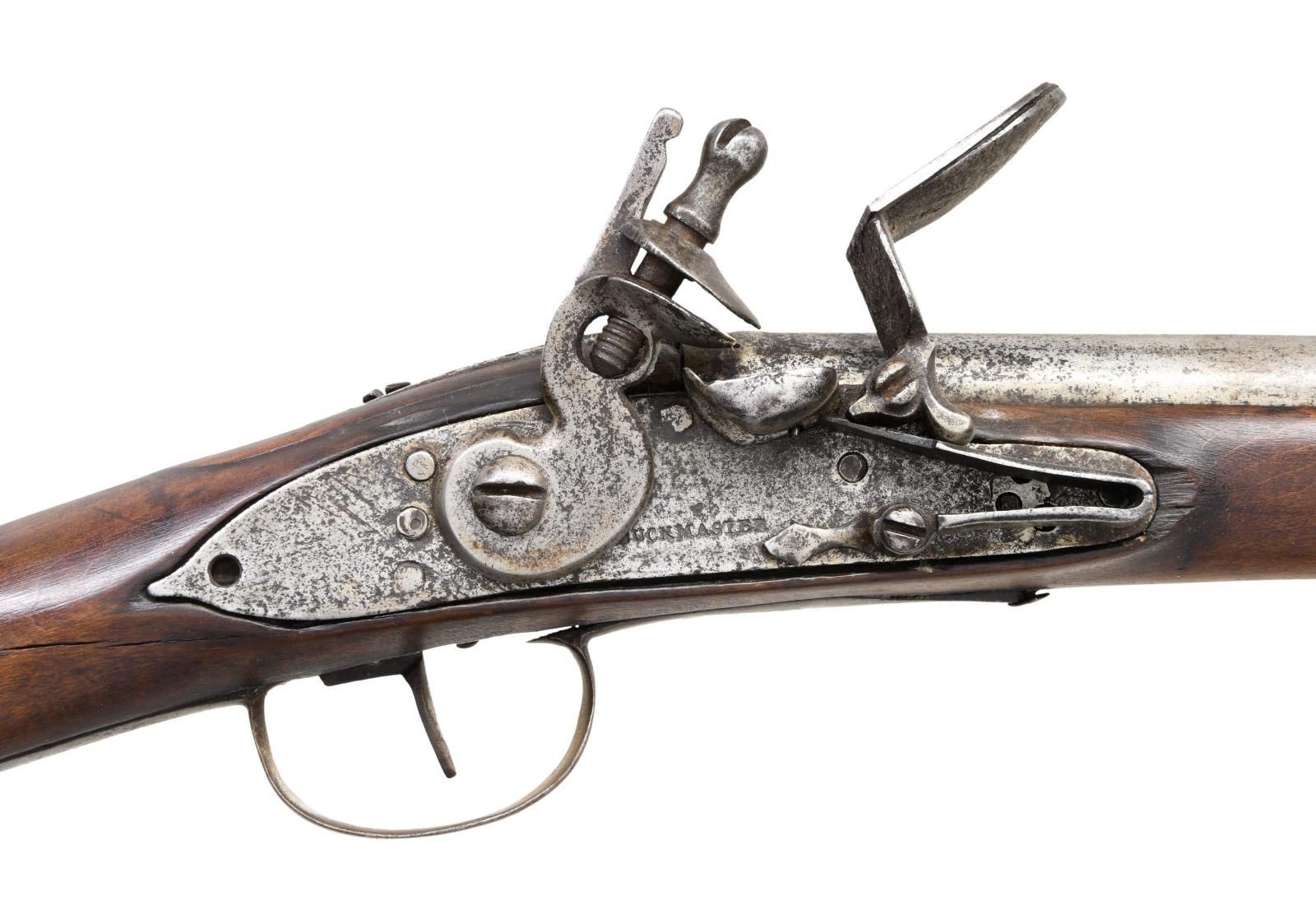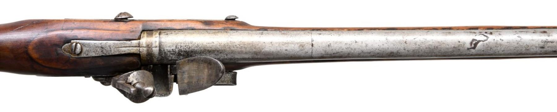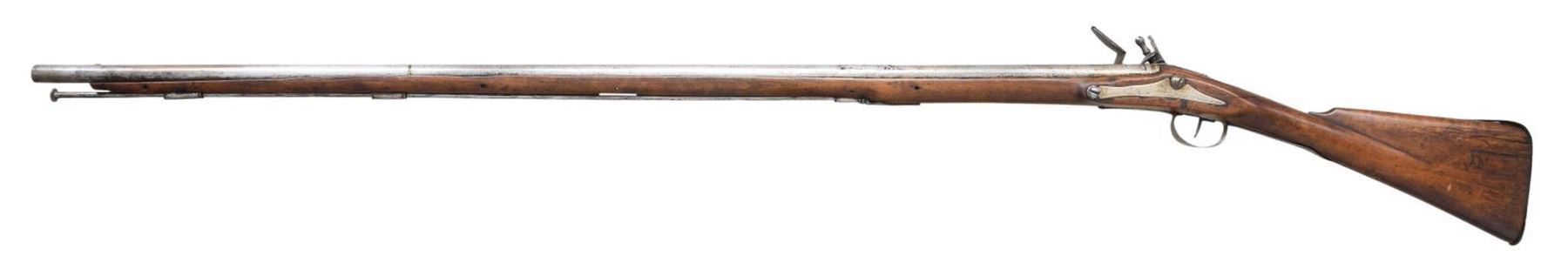 FOWLER. Cal. .73 caliber. NSN. 61.25" overall. 46" round musket barrel. Pictured on pages 60-61 of "The Fur Trade", author Milton Von Damm: "This gun has a lock marked BUCKMASTER. Joseph Buckmaster was a primary gunmaker for the Hudson's Bay company from 1746 to 1764. However, this may be an earlier gun made by his father, William Buckmaster. William's known gun making period was 1716 to 1731. He was a London based gunmaker and did some work for the Board of Ordnance, but not for the Hudson's Bay Company. This gun does not conform to the HBC trade gun patterns either in barrel length, caliber or marks. The stock style is Queen Anne with the graceful drop down curve on the comb of the stock. This is a cheaply manufactured gun without any proof marks or decorations found on fowlers so it might have been made for some independent trader. The lock is made for three screws but is attached with only two which suggest that the gun may have been restocked during it working life. It has a metal ram rod. The trigger guard is attached with nails and is inletted." CONDITION: good to very good. PROVENANCE: Lifelong Collection of author Milton Von Damm. (01-24787/JS). ANTIQUE: $3,000-5,000.