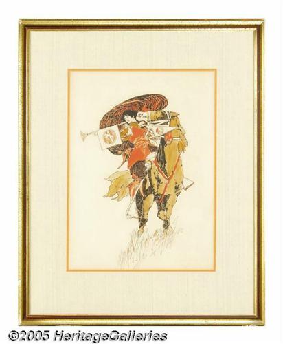 <B>JOSEPH CLEMENT COLL (American 1881-1921)</B></I> <BR>Herald on Horseback<BR>Original Magazine Story Illustration, c.1905 <BR>Mixed media on paper <BR>15.25in. x 10.75in.<BR>Signed lower right: Coll <BR>Provenance: Morris Weiss collection <BR><BR>Condition Report: Mat burn around edges, lower right corner torn off (outside of crop lines)<BR>