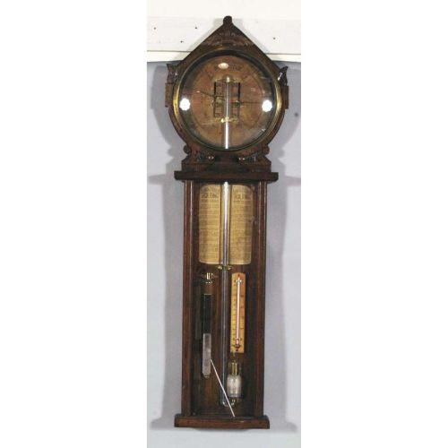 1 JOSEPH DAVIS BAROMETER Royal Polytechnic "Admiral Fitzroy" circa 1880 CONDITION REPORT: printed dial and panels are yellowed, dial with repaired tears and a small loss at center. PACKING AND SHIPPING - this item can't be shipped- direct pick-up only.