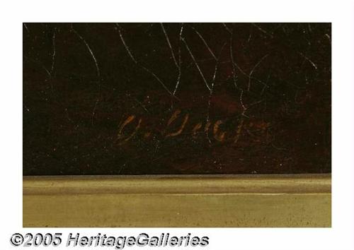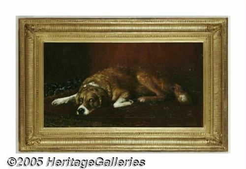<B>JOSEPH DECKER (American 1853- 1924)</B></I><BR>Butch<BR>Oil on canvas<BR>15.13in. x 25.88in.<BR>Provenance: By descent from family of the artist.<BR>Exhibition: Joseph Decker: Still Lifes, Landscapes and Images of Youth; Coe Kerr Gallery, New York, NY, May17th - June 11th, 1988, illustrated plate #XIX<BR><BR>Condition Report: Canvas has been wax-lined, scattered finely-executed inpainting of craquelure, area outlining eyes inpainted, small areas of overpainting in lower right corner.<BR><BR>Brian Roughton: No problem with this being Decker. Condition as noted.<BR><BR><B>Heritage is obtaining a Letter of Authenticity from the Decker family.</B></I>
