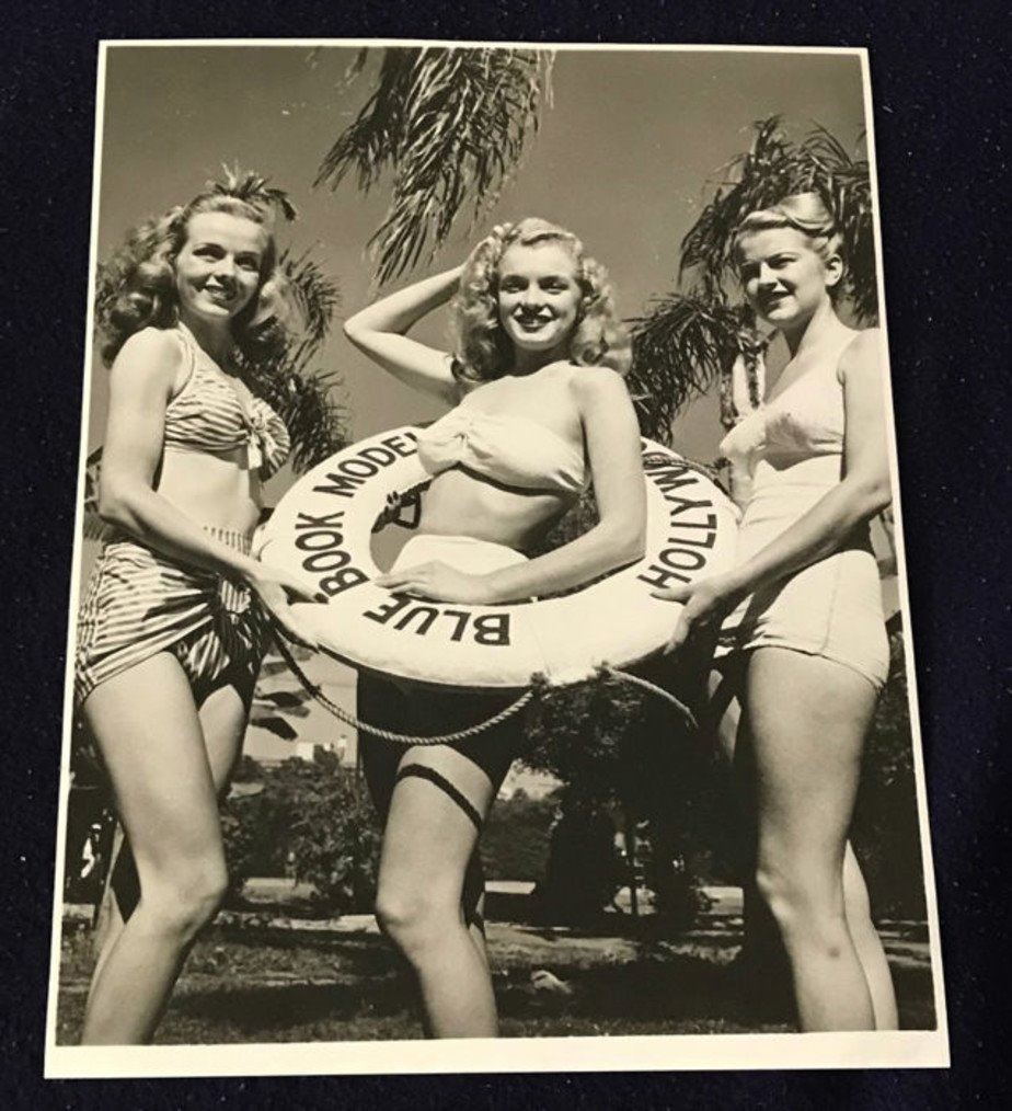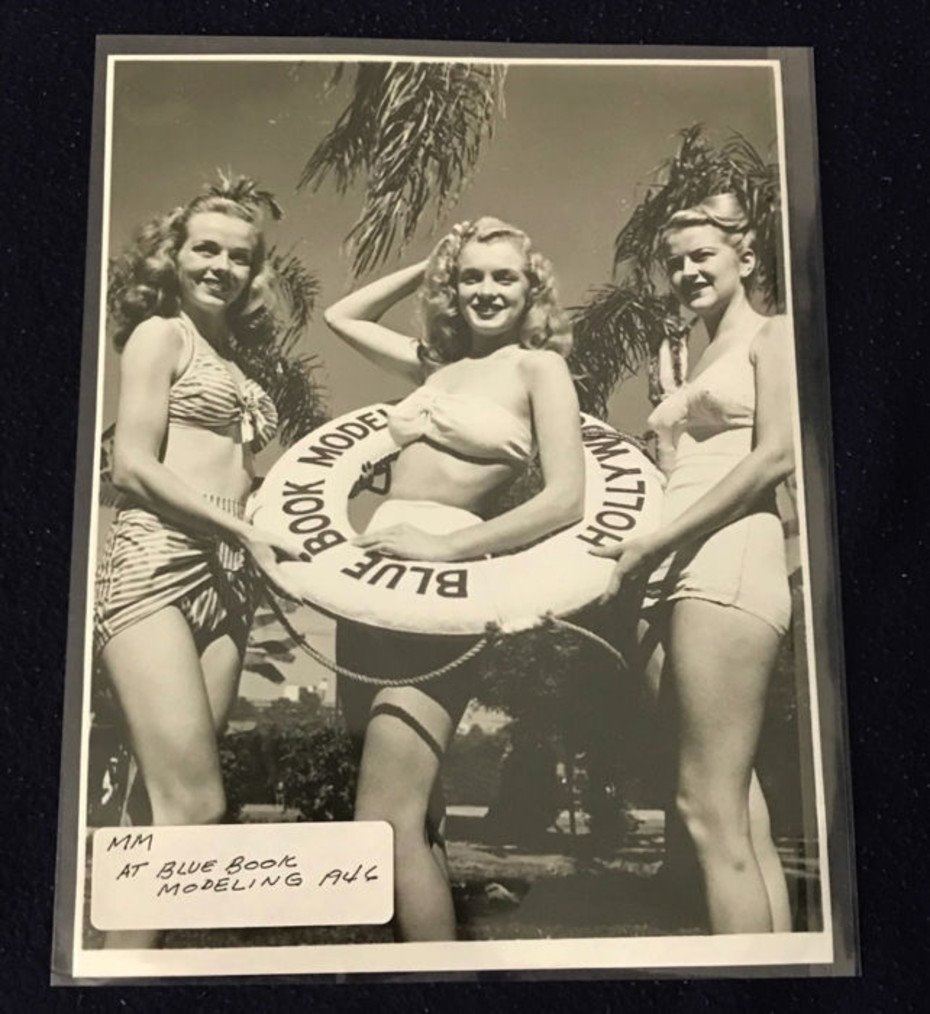 Marilyn Monroe posing with other models for the blue book modelling agency in 1946. Personally printed and stamped by Joseph Jasgur. 10x8 inches.