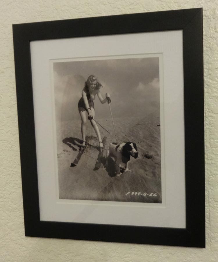 JOSEPH JASGUR: MARILYN MONROE SKIING. 10x8 inch photo printed by Joseph Jasgur. Professionally mounted and framed in wood and glass. On verso the back has been protected by pvc. The photo is mounted onto card and stamped on the card by Joseph Jasgur.