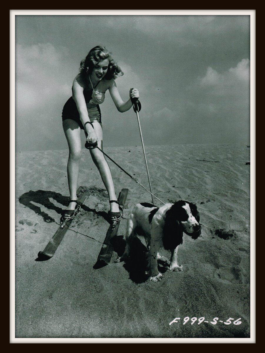 Joseph Jasgur's Marilyn Monroe and models on Zuma beach in 1946. Personally printed and stamped by Jasgur in 1987. Professionally mounted and framed in wood. Image 11x15 inches.