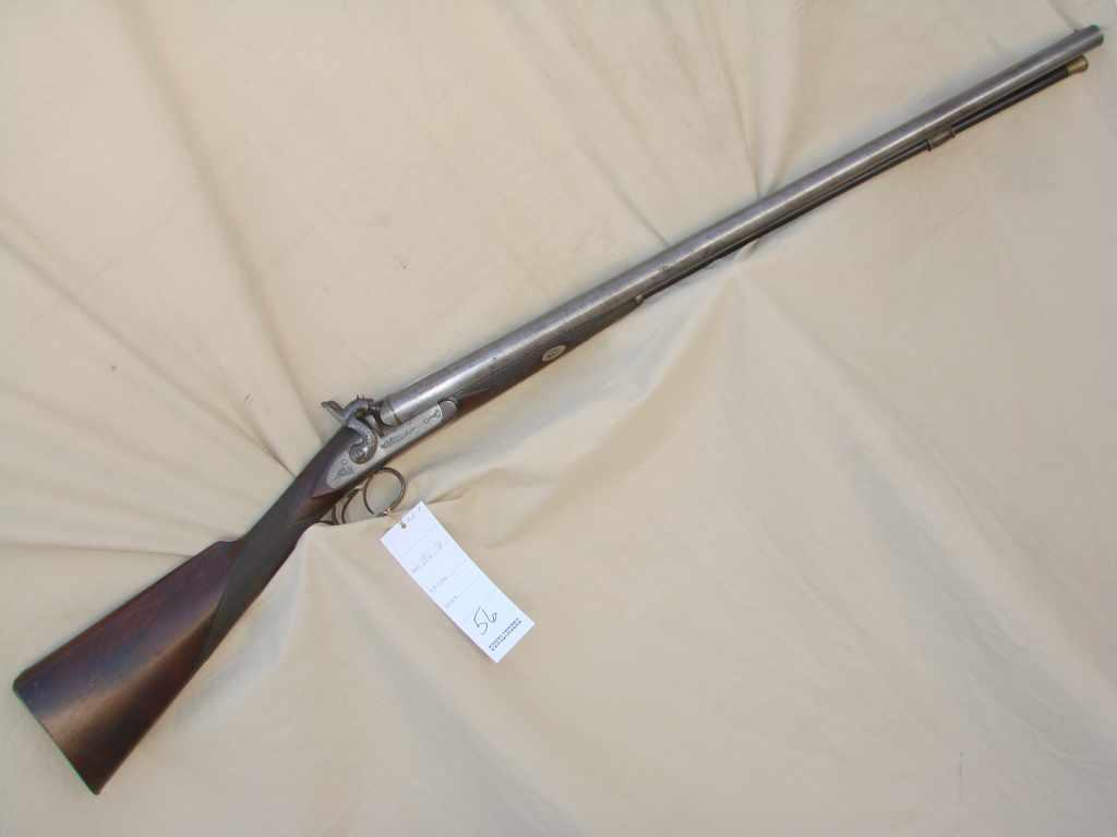 JOSEPH MANTON ANTIQUE MUZZLE LOADING SHOTGUN, ENGRAVED RECIEVER AND HAMMERS, VG OVERALL, GOOD WORKING ORDER (PRE98)
