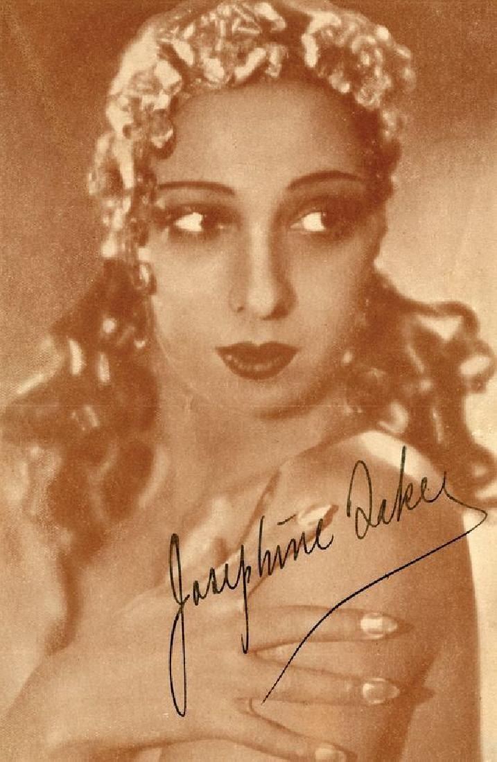 Signed sepia-tone portrait photograph of Josephine Baker, 12.9 x 19.7cm