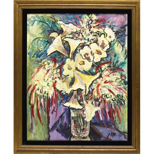 <B>JOSEPHINE MAHAFFEY (1903-1982)</B></I><BR>Untitled Floral<BR>Oil on canvasboard<BR>30in. x 24in.<BR>Signed lower right<BR><BR>A vibrant Josephine Mahaffey floral.<BR><BR> <B>Condition Report:</B> Excellent condition. New frame in excellent condition.<BR><BR><b>Shipping:</b> Requires 3rd Party Shipping (<a target="_blank" href="http://www.heritageauctions.com/common/shipping.php">view shipping information</a>)