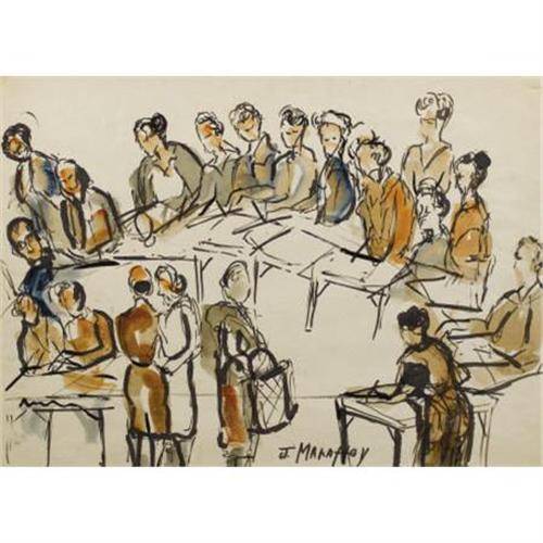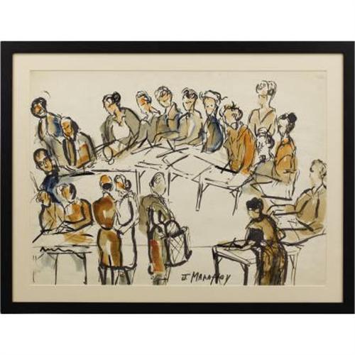 <B>JOSEPHINE MAHAFFEY (1903-1982)</B></I><BR>Untitled Art Class<BR>Watercolor on paper<BR>22 x 30 inches (55.9 x 76.2 cm)<BR>Signed lower center<BR><BR> <B>Condition Report:</B> Excellent condition. New frame in excellent condition.<BR><BR><b>Shipping:</b> Requires 3rd Party Shipping (<a target="_blank" href="http://www.heritageauctions.com/common/shipping.php">view shipping information</a>)