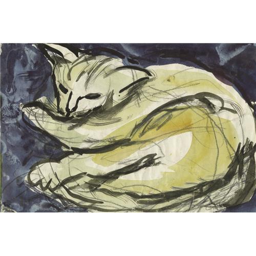 <B>JOSEPHINE MAHAFFEY (1903-1982)</B></I><BR>Untitled Sleeping Cat<BR>Watercolor, ink, and graphite<BR>5 1/2in. x 8in.<BR>Unsigned<BR><BR>Provenance:<BR>Estate of Josephine Mahaffey<BR>Acquired from the above by the present owner<BR><BR> <B>Condition Report:</B> Excellent condition. Unframed.<BR><BR><b>Shipping:</b> Requires 3rd Party Shipping (<a target="_blank" href="http://www.heritageauctions.com/common/shipping.php">view shipping information</a>)