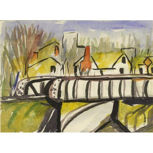 <B>JOSEPHINE MAHAFFEY (1903-1982)</B></I><BR>Untitled Railway Bridge<BR>Watercolor<BR>6in. x 8in.<BR>Unsigned<BR><BR>Provenance:<BR>Estate of Josephine Mahaffey<BR>Acquired from the above by the present owner<BR><BR> <B>Condition Report:</B> Excellent condition. Unframed.<BR><BR><b>Shipping:</b> Requires 3rd Party Shipping (<a target="_blank" href="http://www.heritageauctions.com/common/shipping.php">view shipping information</a>)