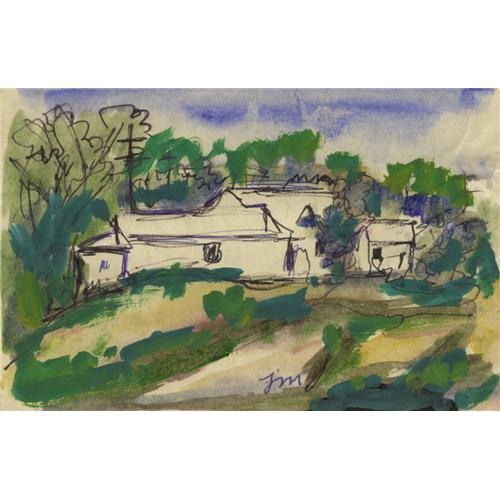 <B>JOSEPHINE MAHAFFEY (1903-1982)</B></I><BR>Untitled Landscape<BR>Watercolor<BR>4in. x 6in.<BR>Signed lower right<BR><BR>Provenance:<BR>Estate of Josephine Mahaffey<BR>Acquired from the above by the present owner<BR><BR> <B>Condition Report:</B> Excellent condition. Unframed.<BR><BR><b>Shipping:</b> Requires 3rd Party Shipping (<a target="_blank" href="http://www.heritageauctions.com/common/shipping.php">view shipping information</a>)