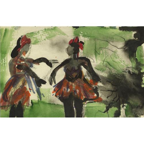 <B>JOSEPHINE MAHAFFEY (1903-1982)</B></I><BR>Untitled Dancers<BR>Watercolor<BR>5in. x 7 1/2in.<BR>Unsigned<BR><BR>Provenance:<BR>Estate of Josephine Mahaffey<BR>Acquired from the above by the present owner<BR><BR> <B>Condition Report:</B> Excellent condition. Unframed.<BR><BR><b>Shipping:</b> Requires 3rd Party Shipping (<a target="_blank" href="http://www.heritageauctions.com/common/shipping.php">view shipping information</a>)