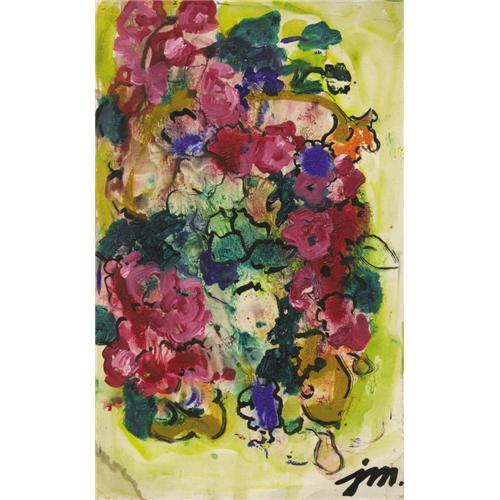 <B>JOSEPHINE MAHAFFEY (1903-1982)</B></I><BR>Untitled Floral<BR>Watercolor, ink, and acrylic on canvas paper<BR>9in. x 6in.<BR>Signed lower right<BR><BR>Josephine Mahaffey florals are often exuberant with color and lively brushwork.<BR><BR>Provenance:<BR>Estate of Josephine Mahaffey<BR>Acquired from the above by the present owner<BR><BR> <B>Condition Report:</B> Water stain to lower left corner otherwise in excellent condition. Unframed.<BR><BR><b>Shipping:</b> Requires 3rd Party Shipping (<a target="_blank" href="http://www.heritageauctions.com/common/shipping.php">view shipping information</a>)