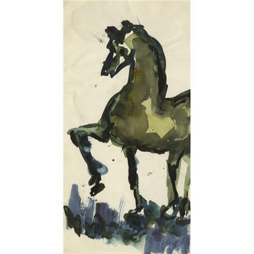 <B>JOSEPHINE MAHAFFEY (1903-1982)</B></I><BR>Untitled Horse<BR>Watercolor<BR>10in. x 5in.<BR>Signed lower right<BR><BR>Provenance:<BR>Estate of Josephine Mahaffey<BR>Acquired from the above by the present owner<BR><BR> <B>Condition Report:</B> Excellent condition. Unframed.<BR><BR><b>Shipping:</b> Requires 3rd Party Shipping (<a target="_blank" href="http://www.heritageauctions.com/common/shipping.php">view shipping information</a>)